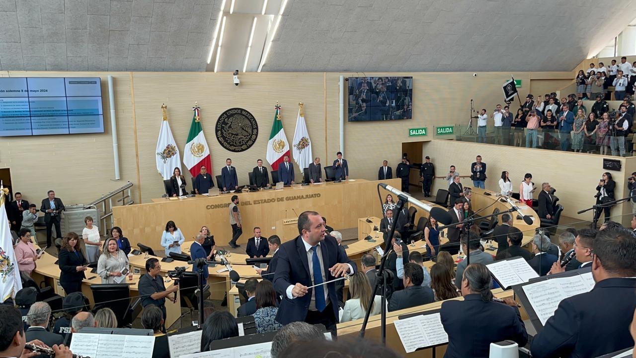 En una sesión solemne en la que estuvieron presentes diputados y representantes del Poder Ejecutivo y Judicial se entonó oficialmente el Himno de Guanajuato.