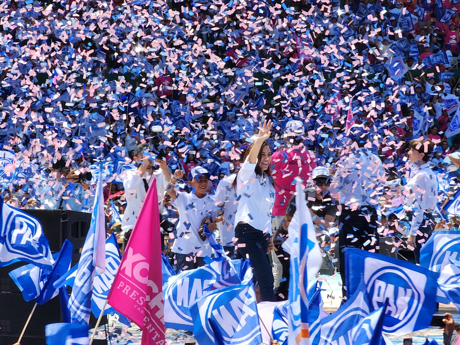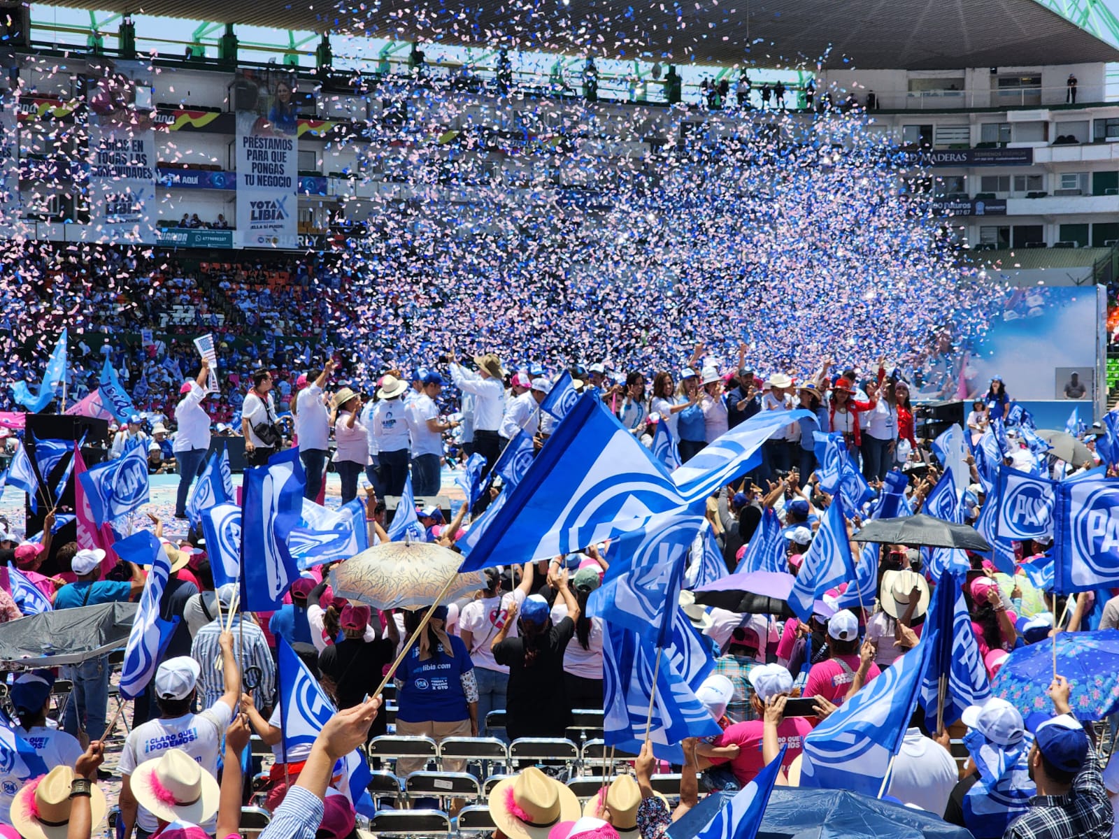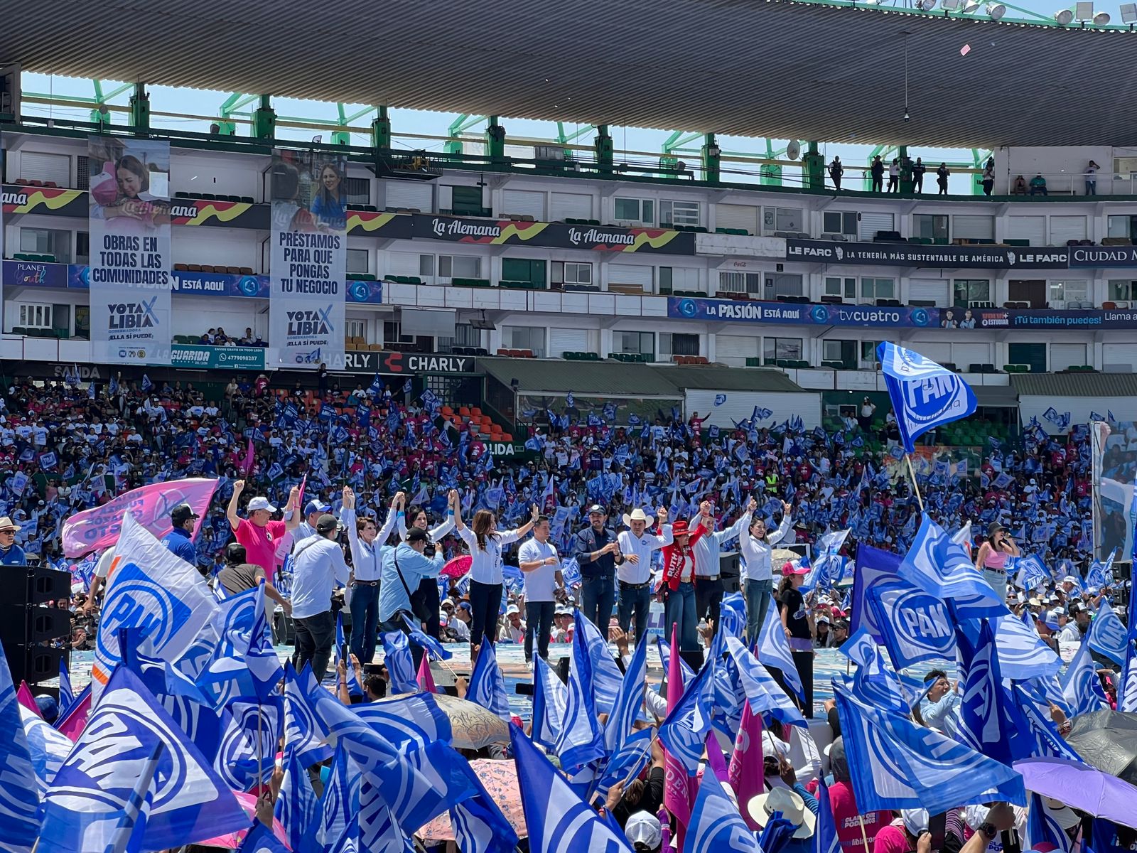 En un Estadio León pletórico, con banderas ondeando y cánticos al ritmo de la victoria, la esperanza se respira en Guanajuato y este Nuevo Comienzo ya nadie lo detiene; “el 2 de junio le vamos a abrir la puerta a la esperanza, con tu voto estamos apostando por un mejor presente y un futuro más próspero”.