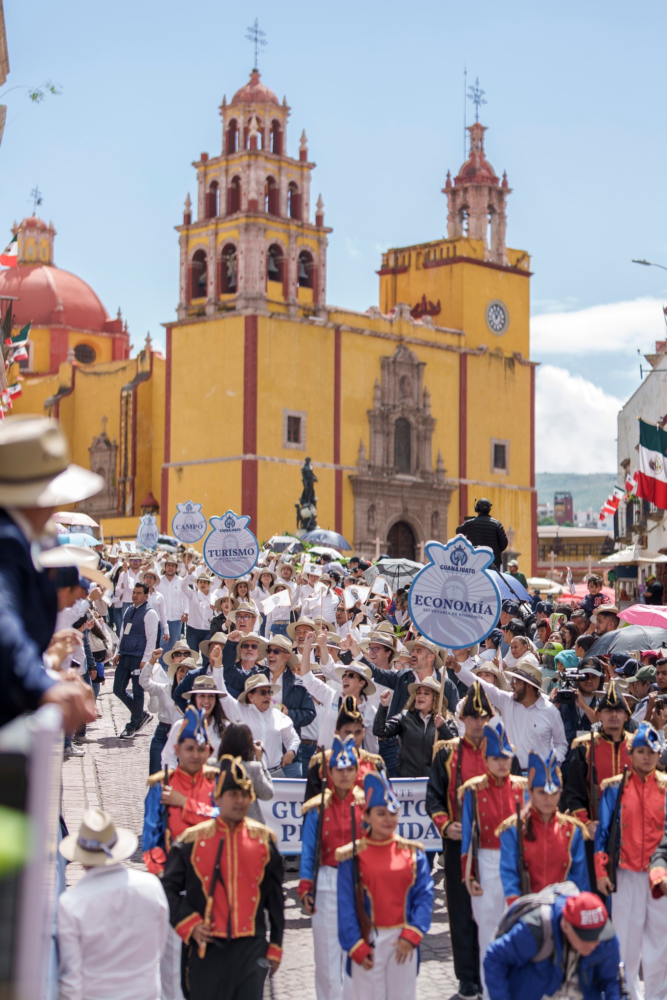Algunos contingentes fueron acompañados con bandas de guerra o grupos de tambora, danzantes o mariachis.