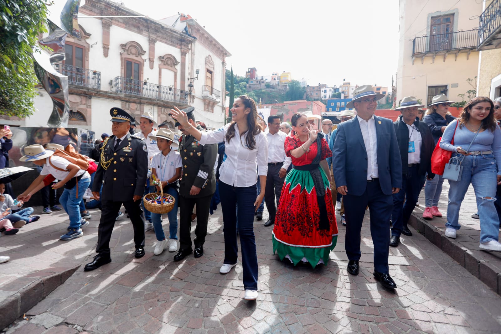 Autoridades estatales retomaron el desfile cuando pasaron los últimos participantes del contingente y se dirigieron a la Alhóndiga de Granaditas, en donde se llevó a cabo la ceremonia protocolaria por el aniversario de esta fecha histórica.
