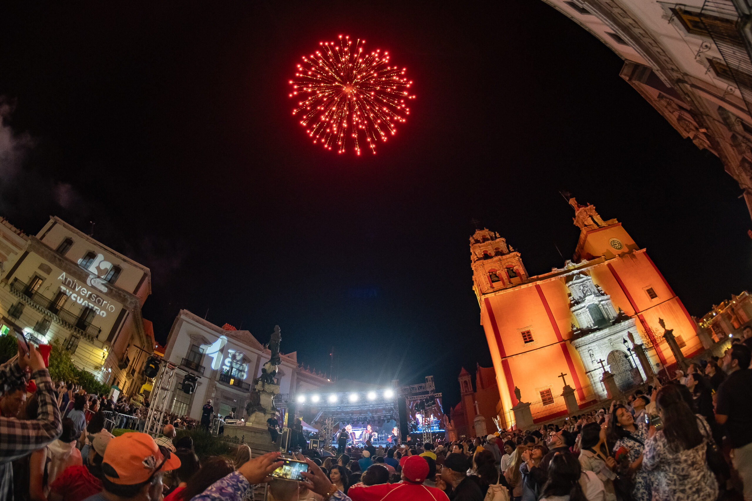 Para cerrar con broche de oro, la presentación musical estuvo a cargo del Grupo Cañaveral, los capitalinos y los guanajuatenses asistentes, bailaron y corearon sus éxitos, para concluir el evento con un gran espectáculo de pirotecnia.