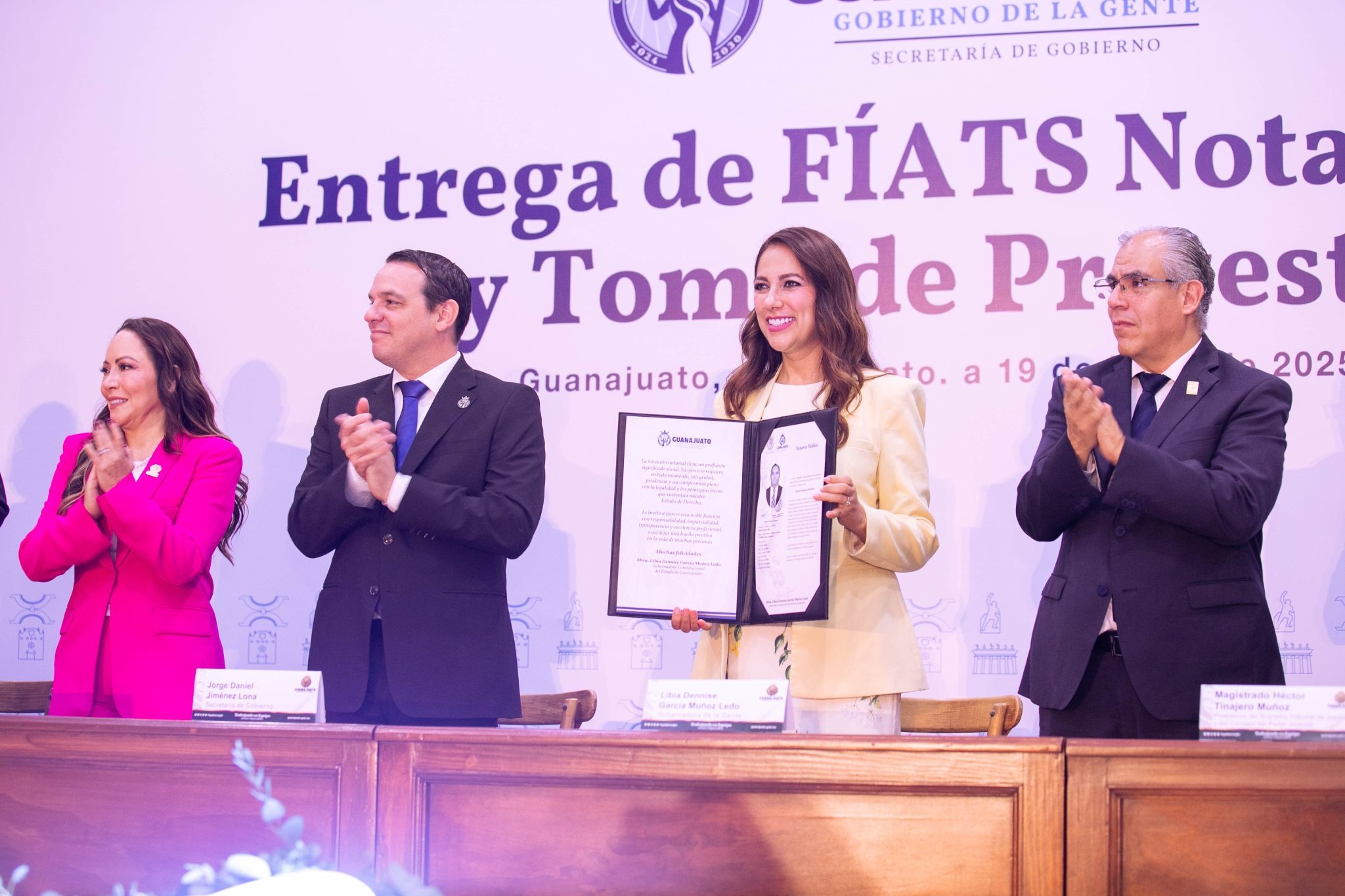 La Gobernadora Libia Dennise García Muñoz Ledo entregó FÍATS notariales y tomó protesta a quienes aprobaron el examen de oposición. Guanajuato se consolida como referente nacional en transparencia y certeza jurídica.