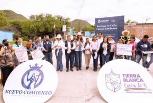 La gira también incluyó el arranque de pavimentación de la calle Morelos en la cabecera municipal y la entrega simbólica de calles rehabilitadas en Las Limitas, Los Ramírez y El Tablón, con una inversión total de más de 4 millones de pesos.