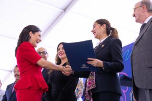 “Los maestros son el corazón de la transformación educativa. Con paciencia, amor y disciplina siembran el deseo de superarse en nuestras niñas y niños”, expresó la mandataria.