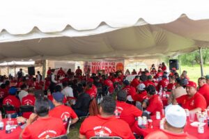 La jornada del Día del Minero estuvo marcada por la camaradería, la emoción y el reconocimiento mutuo. En un ambiente de fiesta auténtica, las y los mineros disfrutaron de una comida tradicional, rifas, regalos y palabras que recordaron el valor de su oficio.