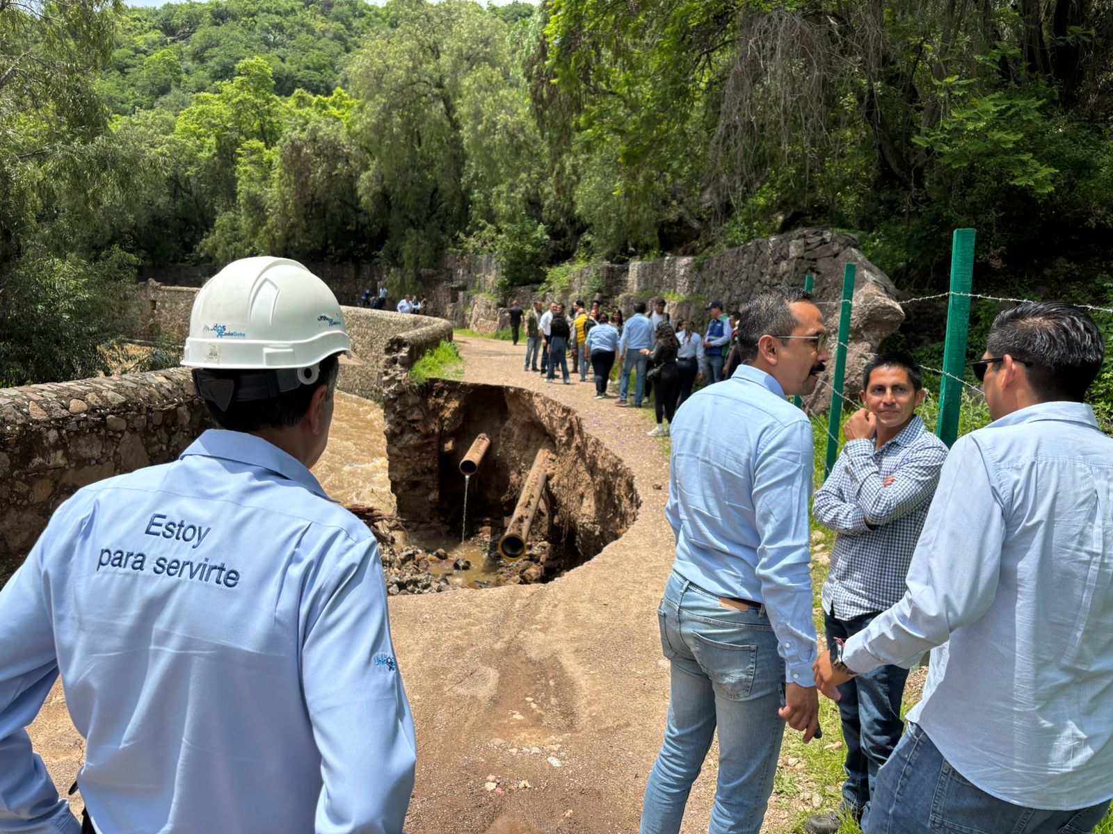 Guanajuato. Gto. El Sistema Municipal de Agua Potable y Alcantarillado de Guanajuato (SIMAPAG) trabaja desde la madrugada del martes 15 de julio para restablecer el suministro de agua en la zona de Marfil y localidades aledañas, tras el daño ocasionado por un socavón en el antiguo camino a Marfil.