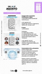 También se inaugurará la muestra Carteles por el agua y el conversatorio “El agua” en la División de Ciencias e Ingenierías, el 13 de agosto por la mañana.
