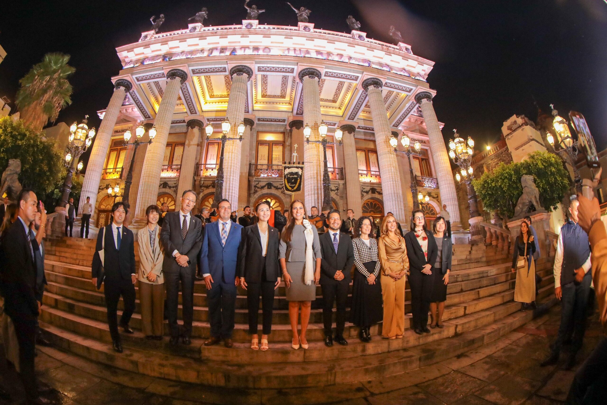 La comitiva, en la que también participó el Cónsul General de Japón en León, Takero Aoyama, realizó un recorrido por la calle principal hasta llegar al Teatro Juárez. Allí, Arfiya Eri firmó el libro de visitantes distinguidos, en un acto enmarcado por la música de la tradicional Estudiantina de Guanajuato.