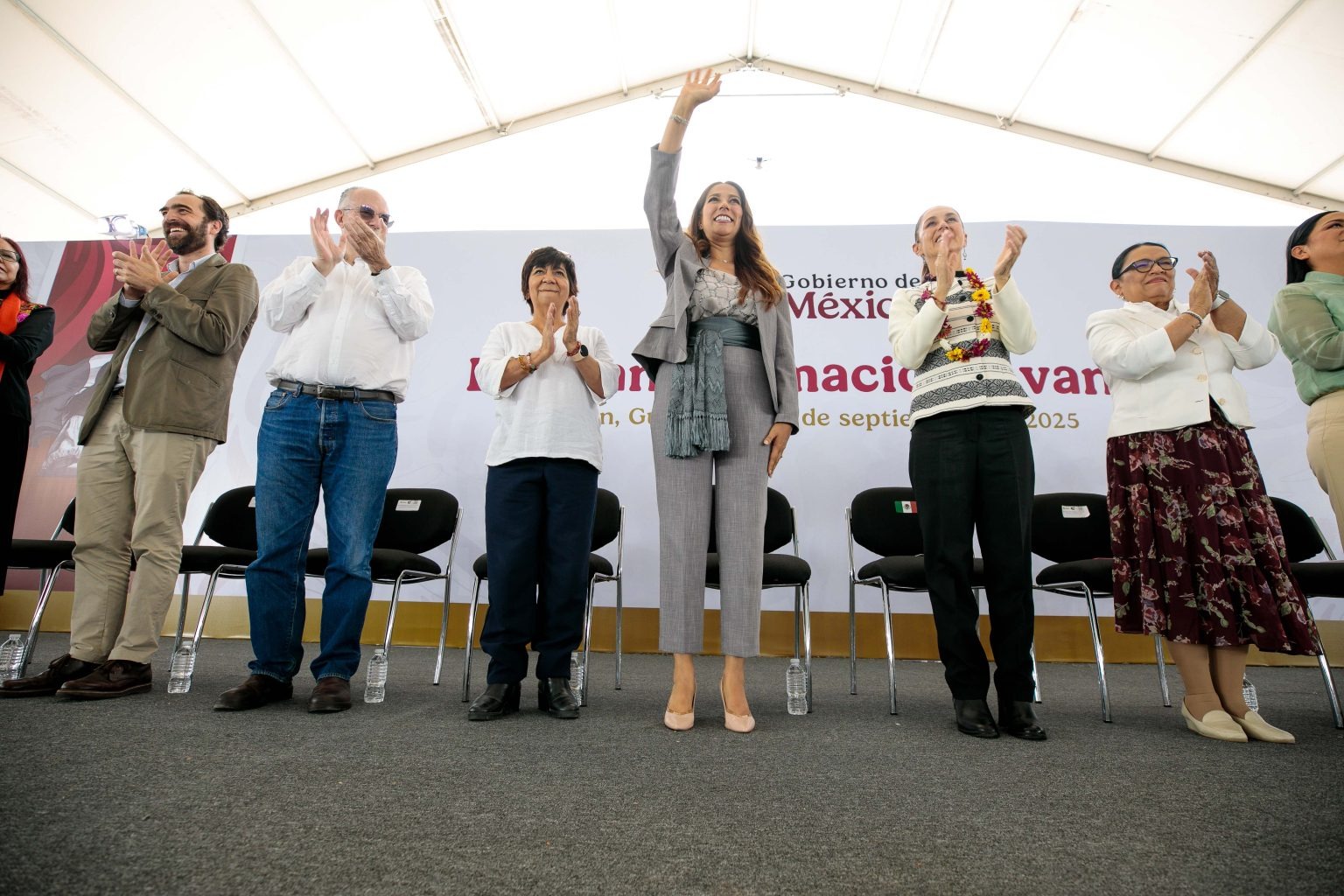 En su mensaje, la Presidenta de México, Claudia Sheinbaum, destacó la coordinación con el Gobierno Estatal en materia de seguridad, lo que ha permitido reducir los homicidios.
