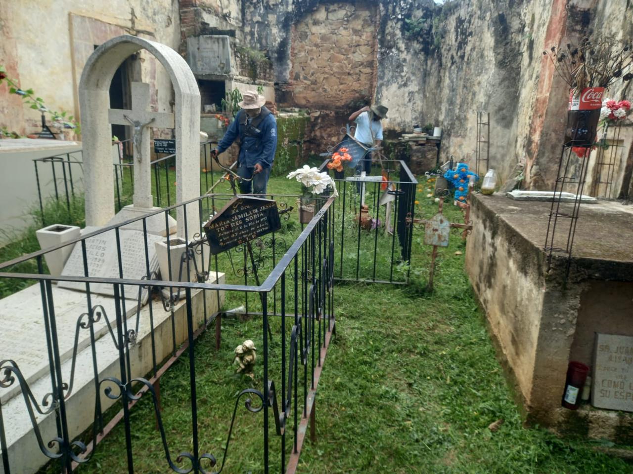 Para recibir a las miles de personas que acudirán a los panteones, personal de Servicios Públicos Municipales realizó labores de mantenimiento y limpieza en todos los espacios, con el fin de ofrecer entornos seguros, limpios y adecuados para la convivencia familiar.