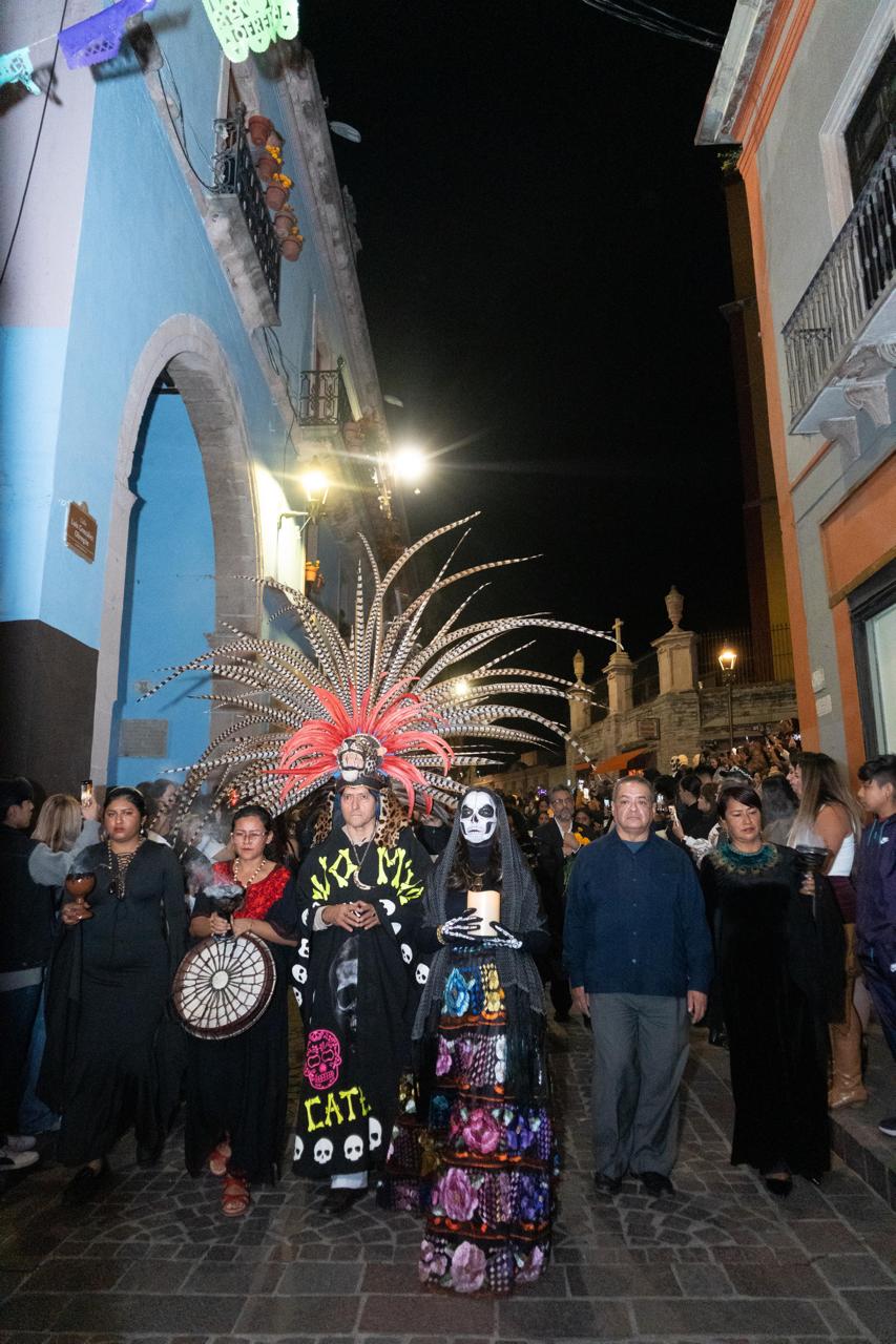 A las 19:00 horas, la procesión de Los Angelitos partió desde la Ex Estación del Ferrocarril hacia el templo de San Sebastián. En silencio y con respeto, contingentes y familias enteras recordaron a los pequeños que partieron antes de tiempo, mientras cientos de personas, muchas disfrazadas, acompañaron el recorrido con admiración y cariño.