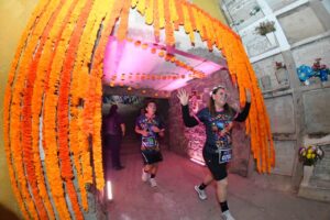 Más tarde, casi dos mil corredoras y corredores se reunieron en el Panteón de Santa Paula para participar en la carrera “Muero por correr”, que en su edición número once se consolidó como una de las actividades más queridas del festival. Entre risas, luces, disfraces y aplausos, participantes locales y visitantes recorrieron tres, seis y diez kilómetros por el corazón de la ciudad.