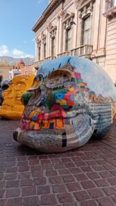 Del 29 de octubre al 2 de noviembre, artistas de la Universidad de Guanajuato (UG) llenaron de color las calles de la capital con una intervención pictórica sobre esculturas de cráneos en gran formato, instaladas en la avenida Juárez y la calle subterránea.