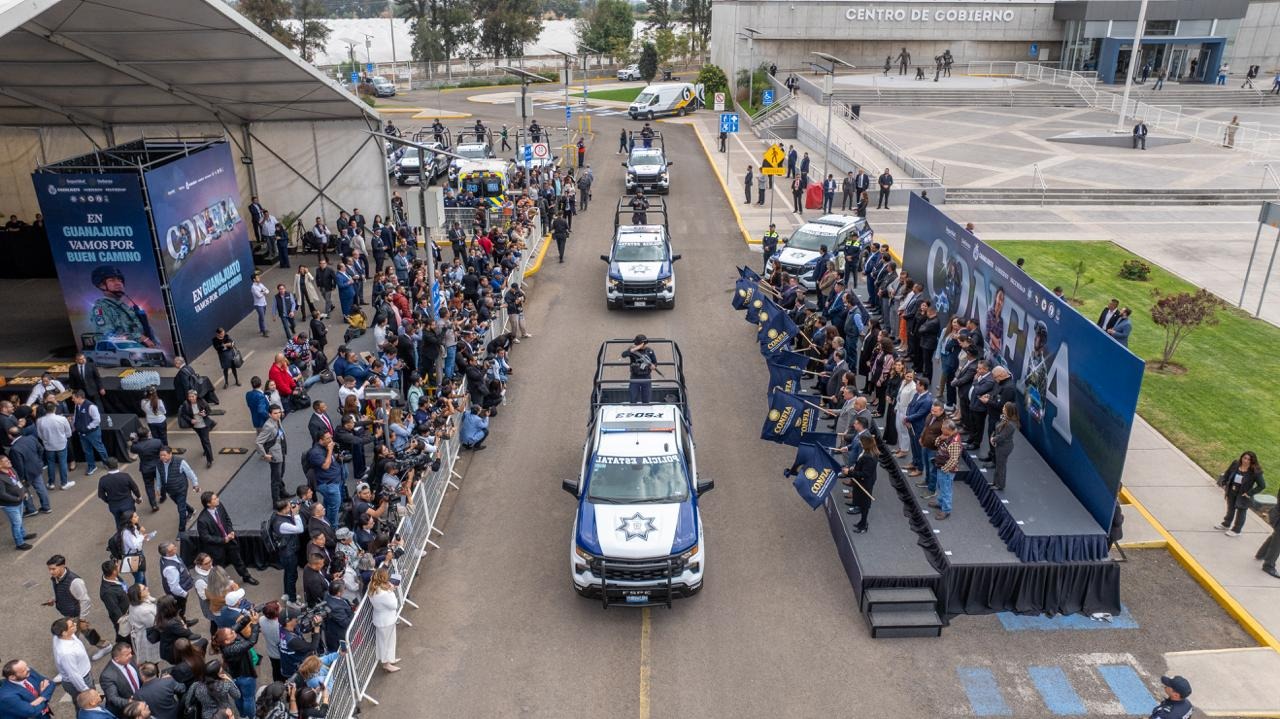 Irapuato, Gto., 08 de diciembre de 2025.— Guanajuato vive un momento clave en materia de seguridad pública. A un año de la puesta en marcha de CONFIA, la Gobernadora Libia Dennise García Muñoz Ledo presentó el Plan de Carreteras Seguras, una estrategia diseñada para blindar los más de 4 mil kilómetros de vías estatales y federales, además de entregar 162 nuevas unidades a las corporaciones estatales.