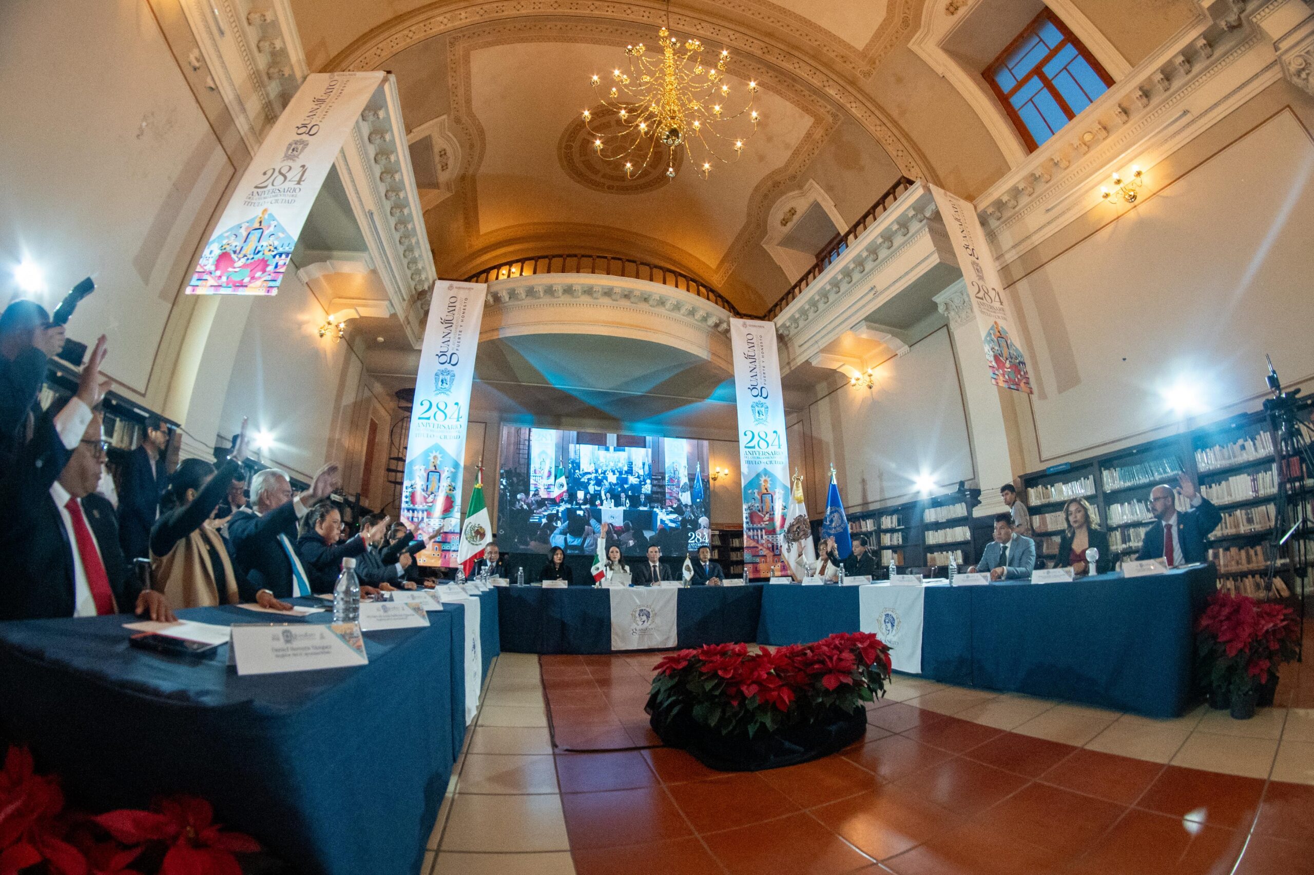 Guanajuato, Gto., 08 de diciembre de 2025.— El Ayuntamiento de Guanajuato conmemoró los 284 años de su elevación al rango de Ciudad y los 37 años como Ciudad Patrimonio de la Humanidad, en una Sesión Solemne que reafirmó la grandeza cultural, histórica y humana de la capital.