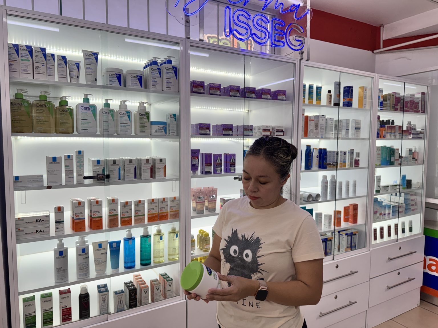 El Área Derma ISSEG es un concepto diseñado para brindar una experiencia de compra más informada y personalizada. Además de contar con anaqueles exclusivos para productos dermatológicos, este espacio dispone de dermoconsejeras que ofrecen orientación sin costo, de lunes a sábado, en un horario de 10:00 a 18:00 horas.