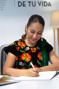 Como parte de su agenda oficial, la Gobernadora asistió a la inauguración del Pabellón de México en la Feria Internacional de Turismo (FITUR) 2026, acto que contó con la presencia del Rey Felipe VI y la Reina Letizia, subrayando la relevancia diplomática y cultural del encuentro.