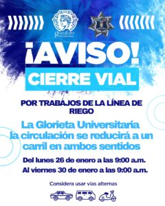 Estas labores se realizarán durante la última semana de enero, por lo que se exhorta a la ciudadanía a tomar precauciones, salir con anticipación y considerar rutas alternas para evitar contratiempos.