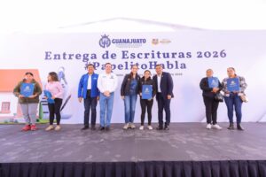 En el Jardín Principal del municipio, la Gobernadora encabezó la entrega de 123 escrituras a familias beneficiarias del programa “Papelito Habla”, otorgándoles certeza jurídica sobre su patrimonio.