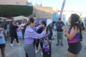 Al cruzar la meta, las participantes fueron recibidas por autoridades municipales, entre ellas la síndica Adriana Ramírez Balderrama y la regidora Fernanda Arellano.