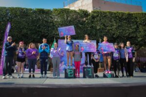 Al cruzar la meta, las participantes fueron recibidas por autoridades municipales, entre ellas la síndica Adriana Ramírez Balderrama y la regidora Fernanda Arellano.