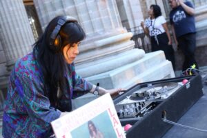 El proyecto Sesiones FM llevó la memoria musical en vinilo al espacio público del Teatro Juárez. Mujeres DJ compartieron una experiencia sonora colectiva en el corazón de Guanajuato.