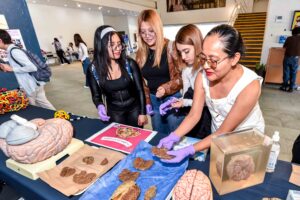 Una de las actividades más llamativas fue la exploración de cerebros reales y muestras al microscopio. De este modo, los asistentes pudieron observar directamente estructuras y procesos.