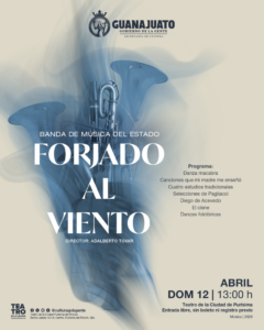 Por su parte, en Purísima del Rincón, el Teatro de la Ciudad recibirá el concierto “Forjado al viento” de la Banda de Música del Estado.