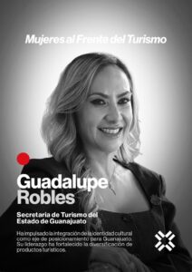 De acuerdo con la publicación, la trayectoria de María Guadalupe Robles León se distingue por su enfoque en la promoción turística y la gestión de destinos.